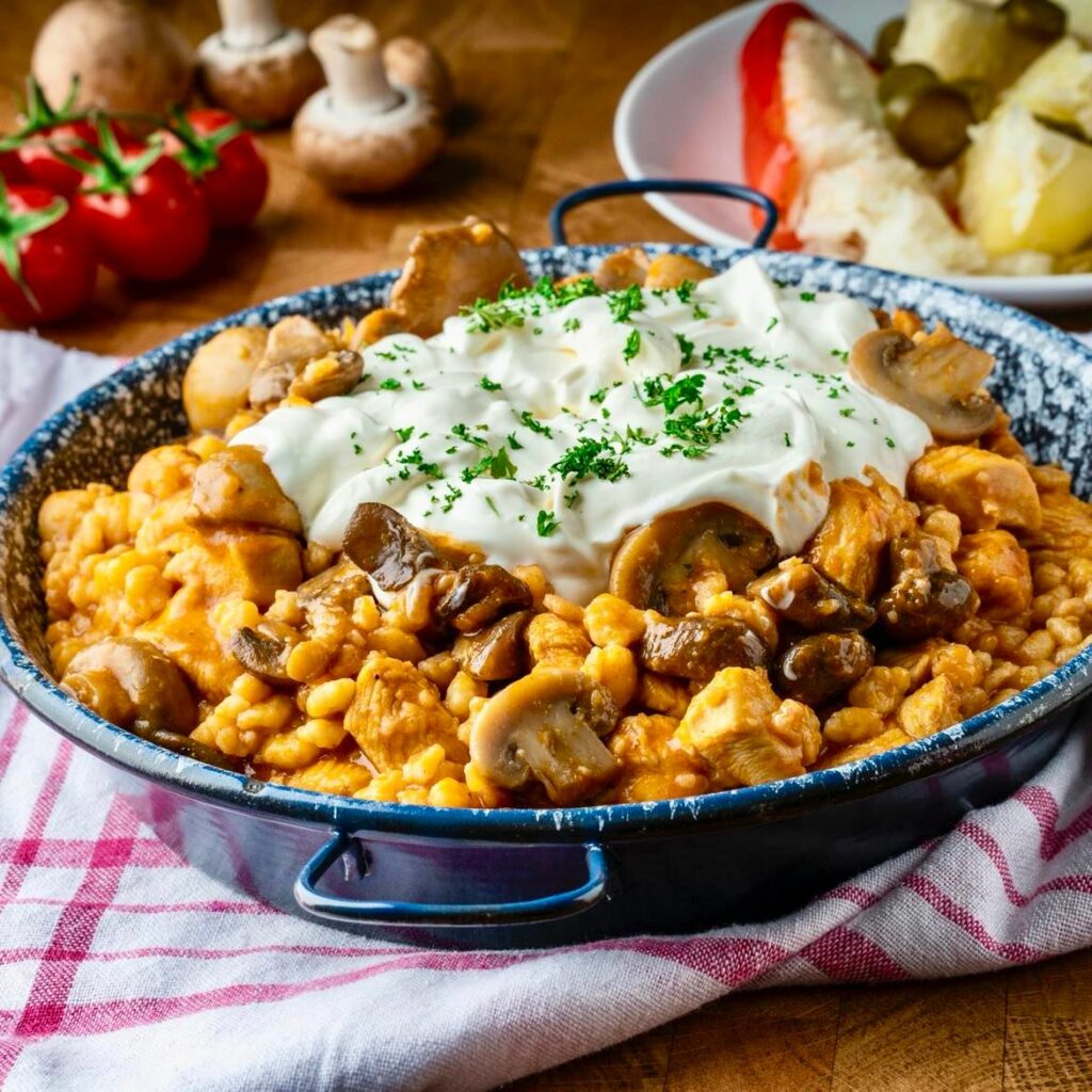Imádom a házi tarhonyát, a pirított gombáról már ne is beszéljünk. Tudom semmi extra nincs a receptben, bárki elkészíti, inkább csak ötletadónak szánom, hátha valakinek jól jön mert éppen semmi ötlete, hogy mi készüljön ebédre. 🙂